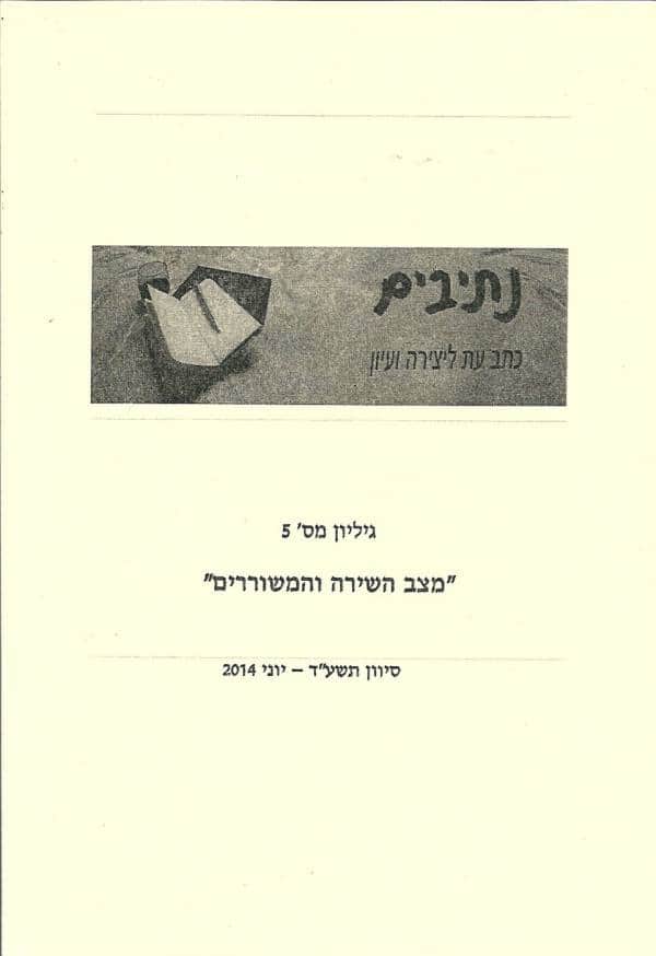 ביום שלישי, ה15 ביולי, התקיים ערב שהוקדש כולו לקריאת שירים בנושא "מצב השירה והמשוררים". הערב, שהתקיים בספריית קריית אונו סיכם הופעת גיליון 5 של כתב העת המקוון "נתיבים" בעריכת נעמה ארז ושמעון רוזנברג. ולרגל הופעת אסופת השירים בנושא, בחוברת מודפסת.