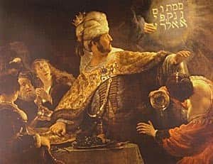 וַיֹּאמֶר הָאִישׁ הֵטַבְתָּ אֶת אֲשֶׁר דִּבַּרְתָּ / וְהִנְנִי מֵקִים הָאֹמֶר אֲשֶׁר גָּזַרְתָּ / וַיְצָו לְהָבִיא בָרִאשׁוֹנָה הַדָּגִים / וְנִהְיֶה אוֹכְלִים וְשׁוֹתִים וְחוֹגְגִים / וְאָחָר הַדָּגִים הֵבִיאוּ הַטְּלָאִים הַצְּלוּיִים מוֹר עוֹבֵר נוֹטְפִים / כְּאִלּוּ מִן הַשּׁוֹשַׁנִּים קְטוּפִים / אוֹ מִשִּׂפְתוֹת הַיְּעֵלוֹת חֲטוּפִים / וּמְתוּקִים מִדְּבָש וְנֹפֶת צוּפִים / וְהַמִּרְקָחוֹת וּזְנִים הָיוּ עַל הַשֻּלְחָן כַּאֲבָנִים / וְהַשְׁקוֹת בִּכְלֵי זָהָב וְכֵלִים מִכֵּלִים שׁוֹנִים / וְיֵין מַלְכוּת רָב / מָתוֹק לַנֶּפֶשׁ וְלַחֵךְ יֶעֱרָב / וְאָכַלְנוּ וְשָׁתִינוּ עַד אֲשֶׁר לֹא הִכַּרְנוּ מִזְרָח מִמַּעֲרָב /