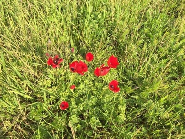 עַל גְּדַת נַחַל תְּאֵנִים אֲנִי וְהַכַּלָּנִית הָאֲדֻמָּה