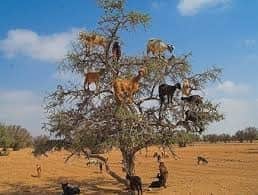 עיזים לבנות ושחורות מטפסות על העץ העבות ואוכלות את פירותיו שבדרך אחרת קשים לקטיפה. הן מעכלות ומרככות את הקליפה, פולטות את הגרעין החוצה ונשים מרוקאיות מלקטות, מייבשות, מעבדות ומפיקות מהגרעינים את שמן האראגן יקר הערך.
