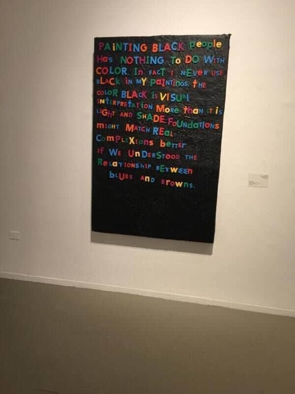 אדם פנדלטון, מווירג'יניה. עבודה ענקית מ-2019. לעבודותיו הוא קורא "דאדא שחור". זוהי הצהרת כוונות מסגרת עבודה, התכוונות של חשיבה ועשיה. צבע של אומנות וצבע שחור- סמלי וממשי.
