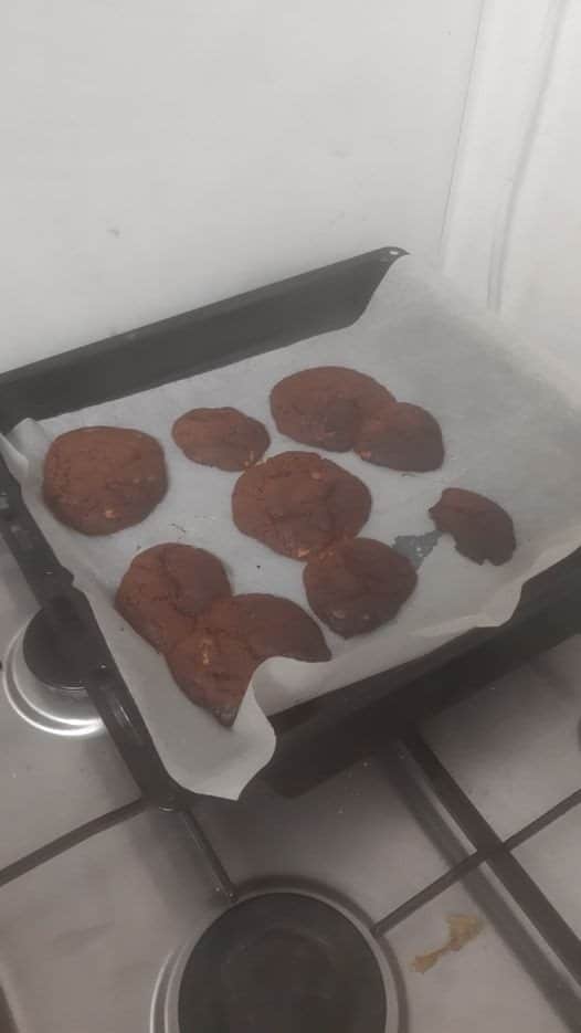 בעזרת כף (עדיף כף גלידה) מסדרים כדורי בצק עוגיות על תבנית מרופדת בנייר אפייה – שומרים על רווחים כי העוגיות משתטחות בתבנית.