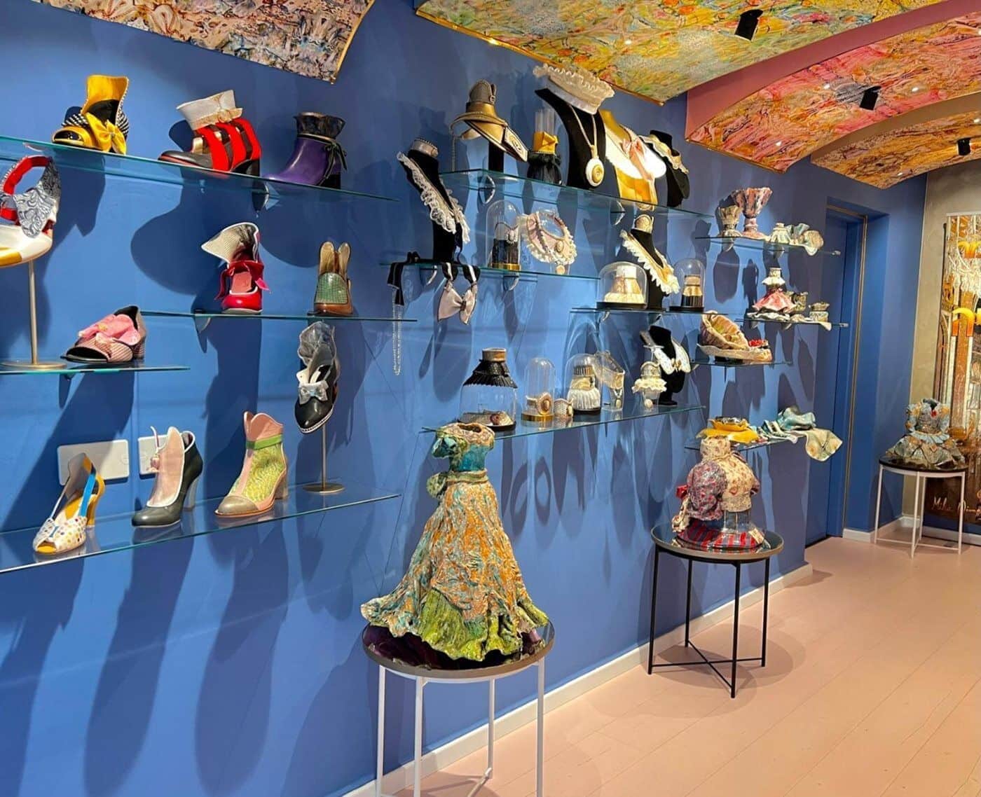 במקום מוצגים פסלי שמלות, תכשיטי שולחן מקרמיקה, נעליים מעוצבות בעיצוב ייחודי וחד פעמי, תכשיטים יוצאי דופן. שילוב נדיר בין אמנות ועיצוב, עולם של דמיון שניתן לממש.