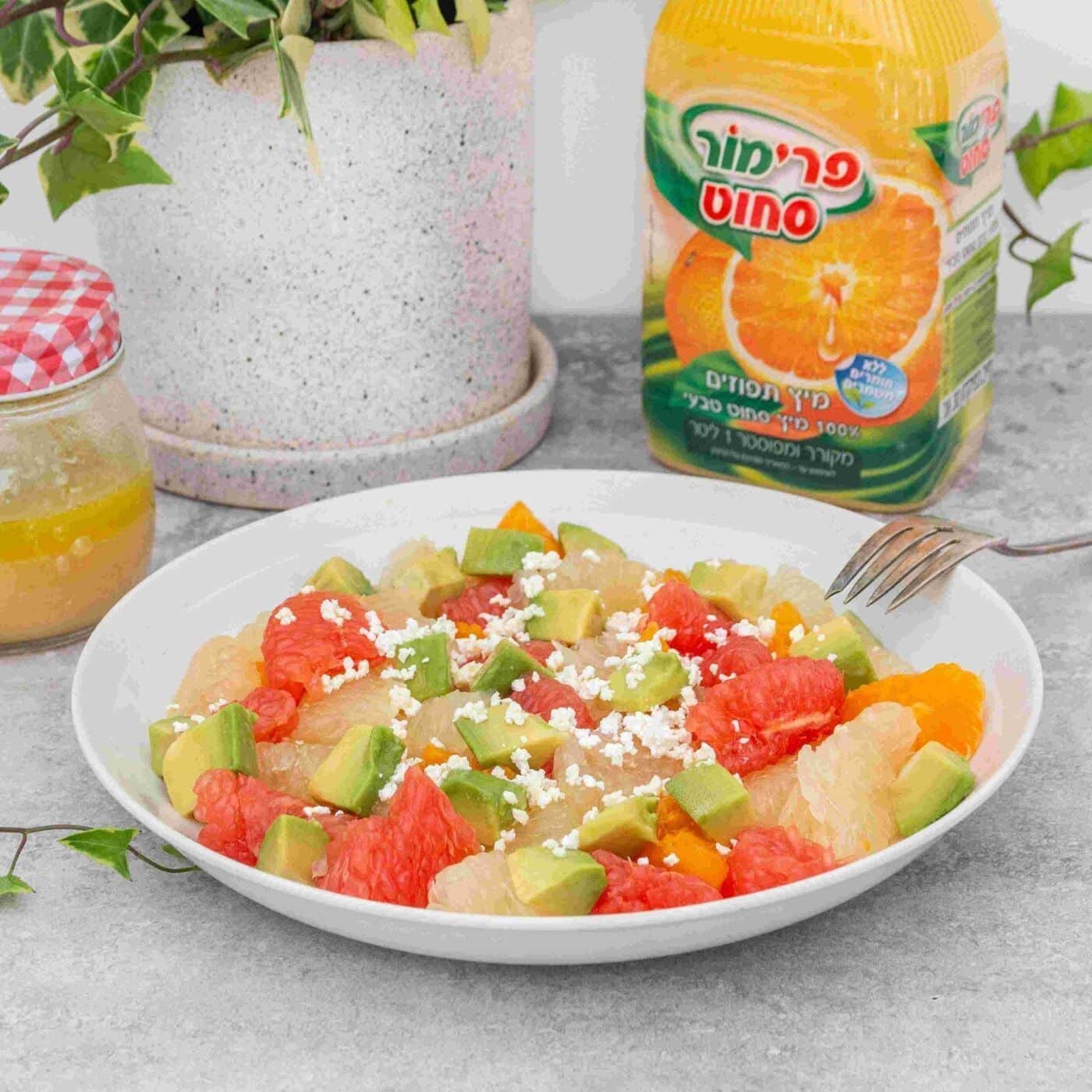 - מרכיבים את הסלט: מניחים את פירות ההדר והאבוקדו בצלחת הגשה, בוזקים מעל כמה כפות נדיבות מהרוטב, מפזרים את הגבינה ומגישים.