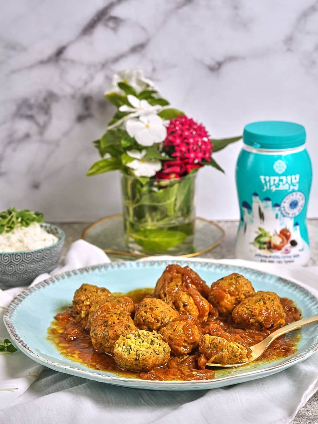 3. מכינים קציצות קטנות ומעבירים לרוטב. מכסים ומנערים את הסיר לערבוב
