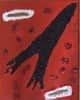 הרקע מסביב, אדום, מעט ארגמני, גם הוא נקוד במיני עיגולים, גדולים יותר הפעם. באופן גרוטסקי מעט, לפנינו גם פרצופים דוויים, מכאב, מצער, או מחוסר אונים.