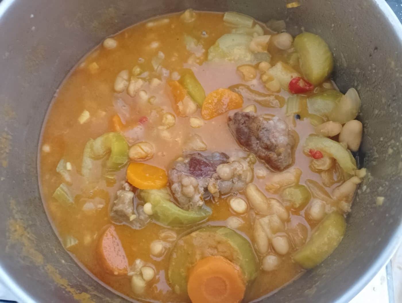 מטגנים בסיר 2 דקות את שיני השום, בכף שמן. מוסיפים את הבשר ומטגנים 5 דקות נוספות על אש בינונית. מוסיפים את השעועית+ כוס ורבע מים. מוסיפים את התבלינים. מבשלים במשך כ40 דקות על אש בינונית.