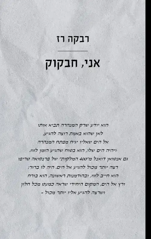 בתוך השקט שהשתרר שמע חבקוק את קולה של אמו חוזר ואומר, "לו יכולתי למצוא את הגרזן של קפקא..."