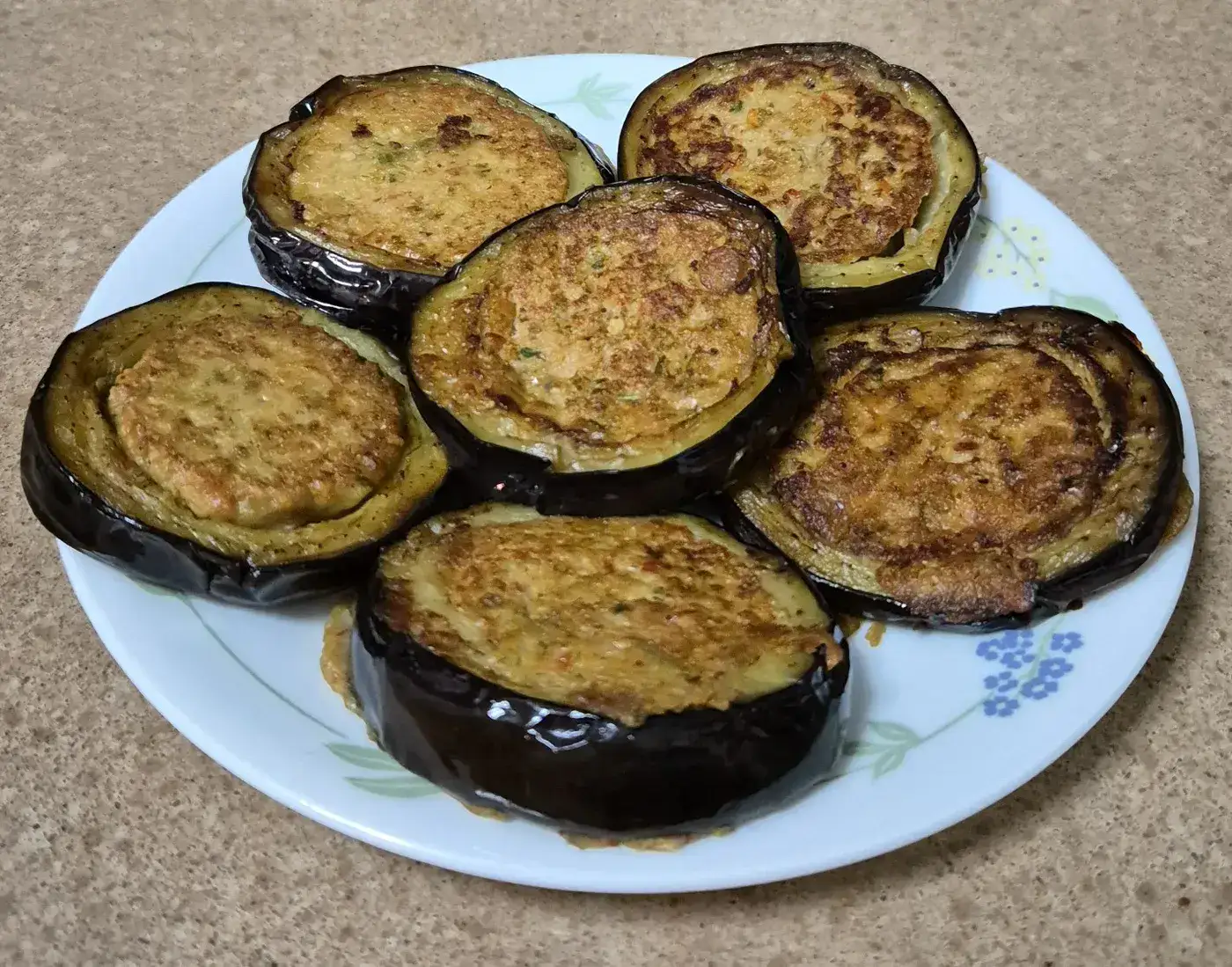 · לחתוך את החצילים עם הקליפה לדסקיות