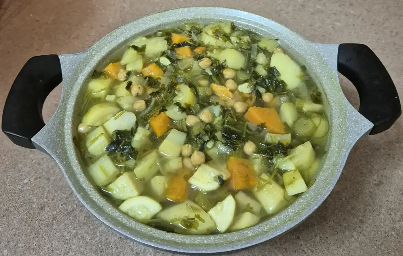· להוסיף לסיר את הירקות לפי הסדר הבא בהפרש של 5 דקות: תפוחי אדמה / בטטה / קישואים / סלרי / כוסברה