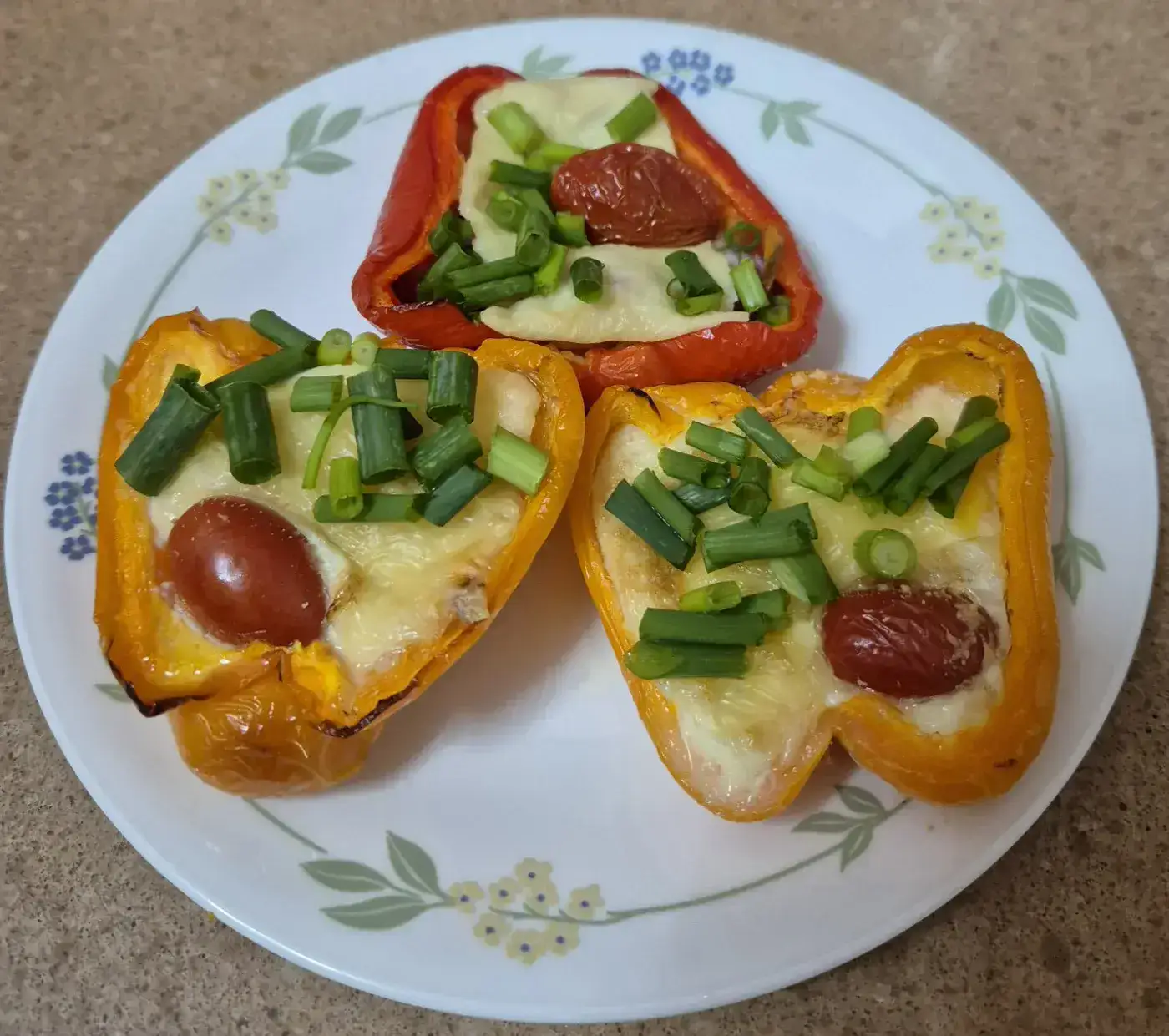 · מלית אחרת: ביצה, כיסוי של פתיתי פרמזן, פרוסת גבינה צהובה, עגבניית שרי
