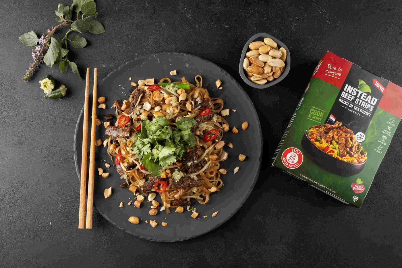 1.במחבת חמה עם שמן בוטנים (או שמן צמחי אחר) מקפיצים את רצועות הבקר מן הצומח של INSTEAD.