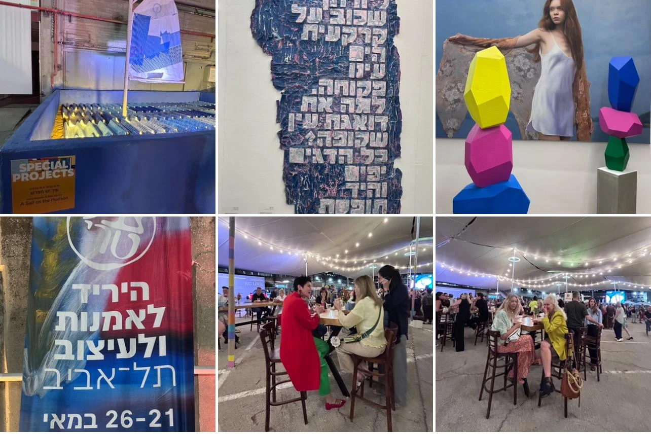 המון ביתנים בשני אולמות ענקיים, בכל ביתן הקירות עמוסים בהמון תוצרים, גם מצגי וידיאו ארט אומנים צעירים וותיקים קהל סקרן אנשים יפים, מצלמים סלפי ומצטלמים עם רותי ברודו, רוני דואק או אילנה גור. כל הפונקציונרים של עיריית תל אביב פה, ראש העיר נעדר. תודה. המעברים צרים והצפיפות גדולה. בשלב מסויים לא אפשר לקלוט את השפע והיופי והאסתטיקה כשהיא מוגזמת הופכת להיות פחות אסתטית ואתה מחפש את שלט היציאה.