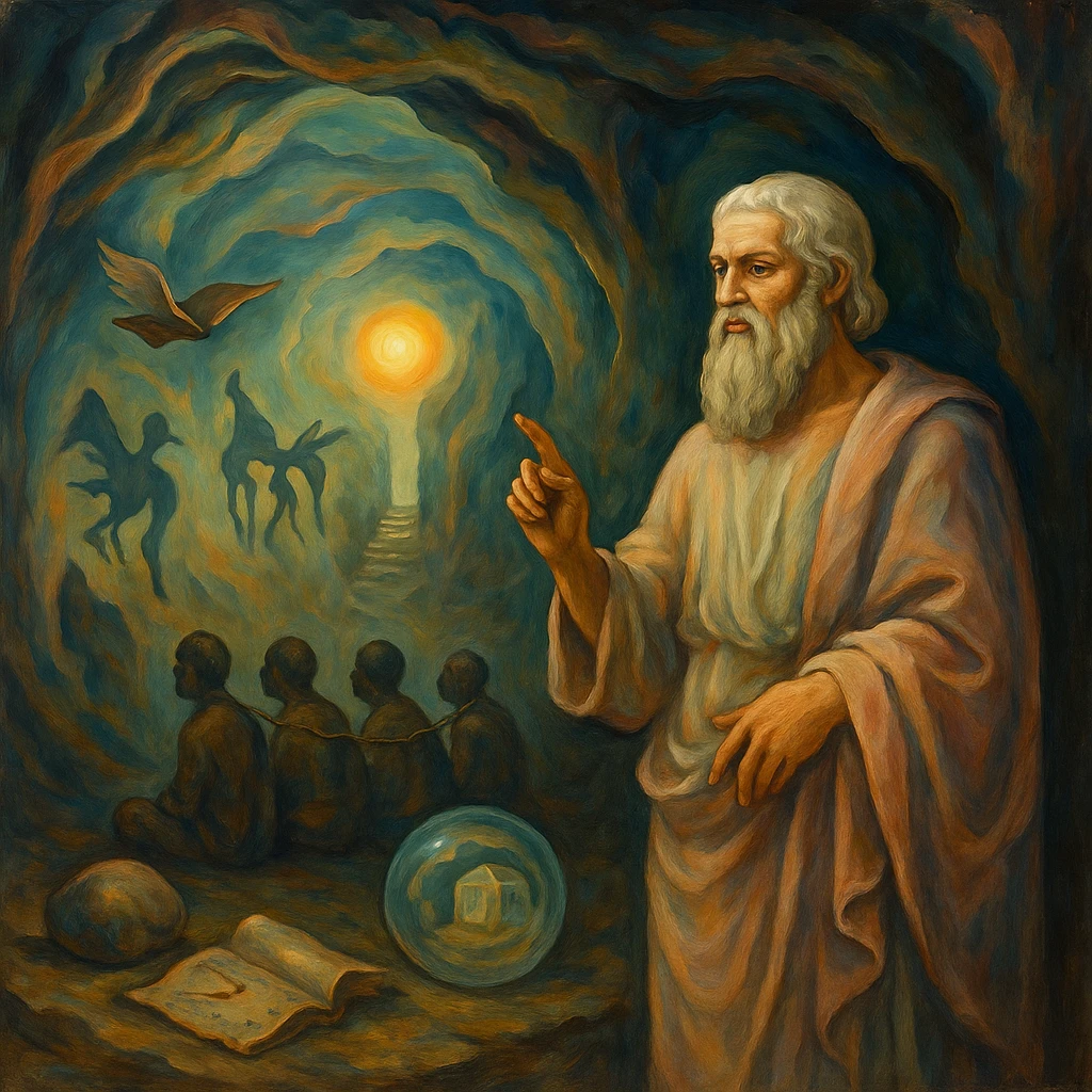 אחת מיצירות ההגות שניסו לגעת ולבדוק את הדרך בה אנו מביטים במציאות, הייתה יצירה של אפלטון: "משל המערה" מתוך "פוליטאה" שלו. בקטע הזה מצוייה אלגוריה חריפה על הדרך המאוד לא מושלמת שבה אנו רואים את העולם. והיות ושפתו של אפלטון (בתרגומו של ליבס מעט מסורבל, אני מביא זאת בלשונו היותר פשוטה של סופר בן זמננו.