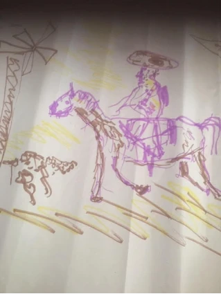 היום התארך. הוא חש בבחילה רוחשת בבטנו, הבחילה התחלפה בכאבים חדים. כשהביט מטה, ראה שדם הכתים את מגפיו. הוא דרבן את הפרד עד זוב דם שפרץ אדום מצלעות הבהמה. הוא הזדעזע והיה עכשיו כרוכב על סוס נדנדה שבור. ההכרה הכתה בדוראנטה כי הוא דרבן את הפרד לדהרה במשך זמן רב מידי. הוא עצר. הפרד עמד, רגליו מפוסקות לרוחב .. ראשו היה מוטה מטה. כשהוא גחן מהאוכף, ראה שפי הבהמה פעור.