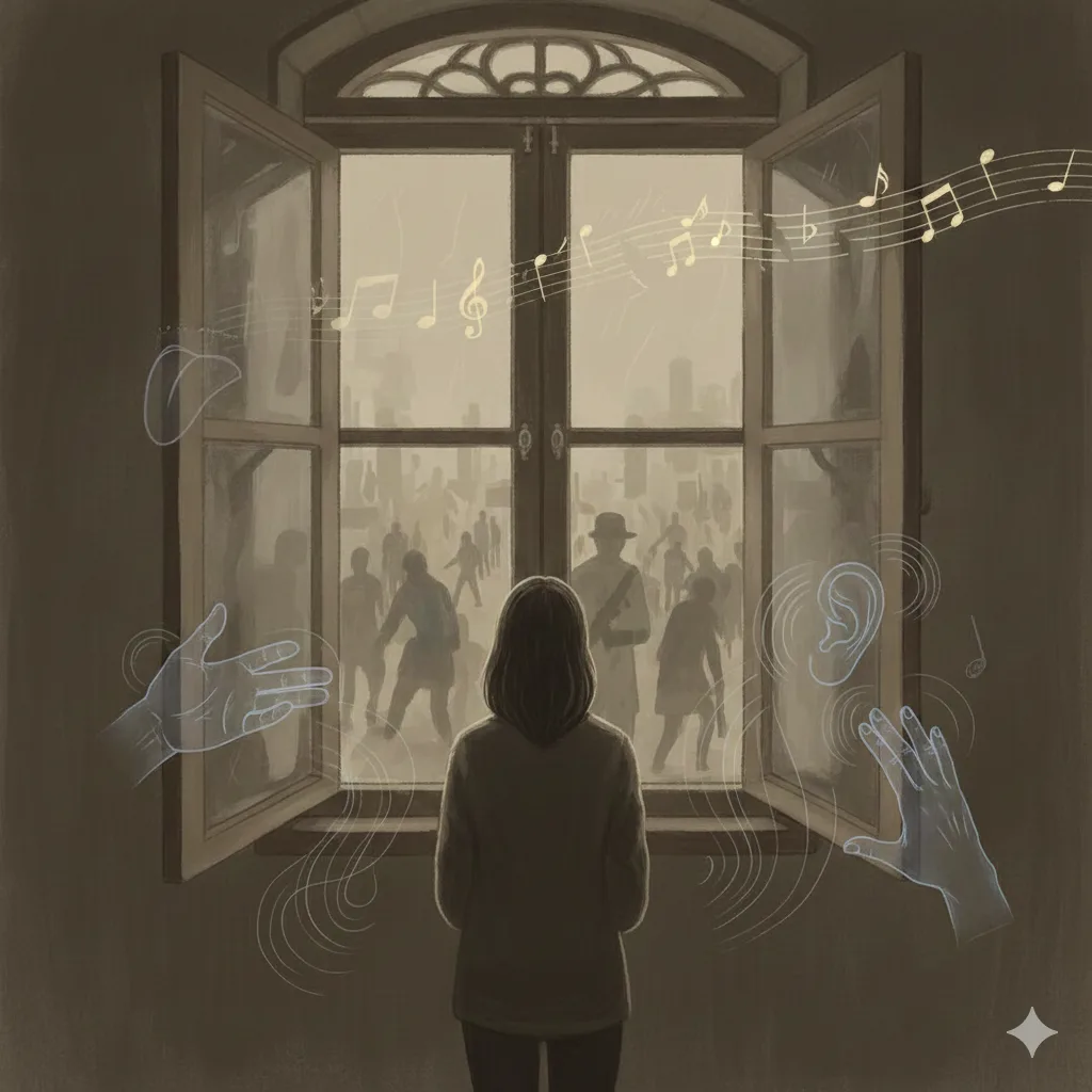 כְּשֶׁהַחַלּוֹן מוּגָף, נִיחוֹחוֹת הַתַּבְשִׁילִים וְהַשִּׁיבָה לְחֵיק בַּיִת אֵינָם אֶלָּא תָּוִים שֶׁל מַנְגִּינָה תּוֹעָה.