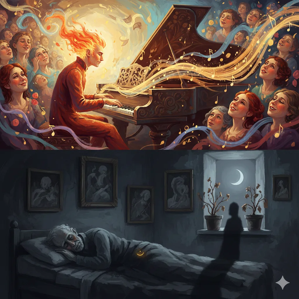 וְהוּא חָשׁ חִיּוּךְ בְּעֹמֶק הָאֲפֵלָה.