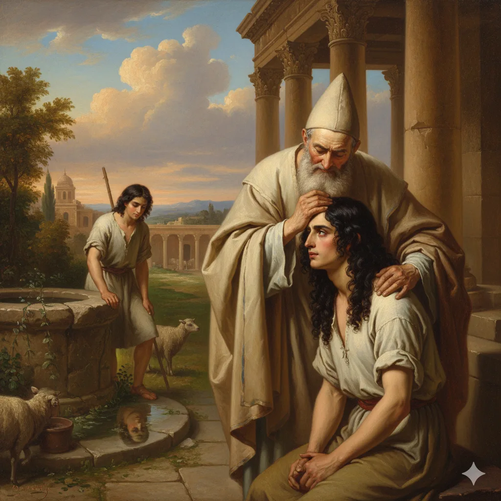 וְרָאִיתִי שֶׁהוּא יְפֵה עֵינַיִם וְטוֹב רֹאִי וּקְוֻצּוֹתָיו סְדוּרוֹת לוֹ תַּלְתַּלִּים.