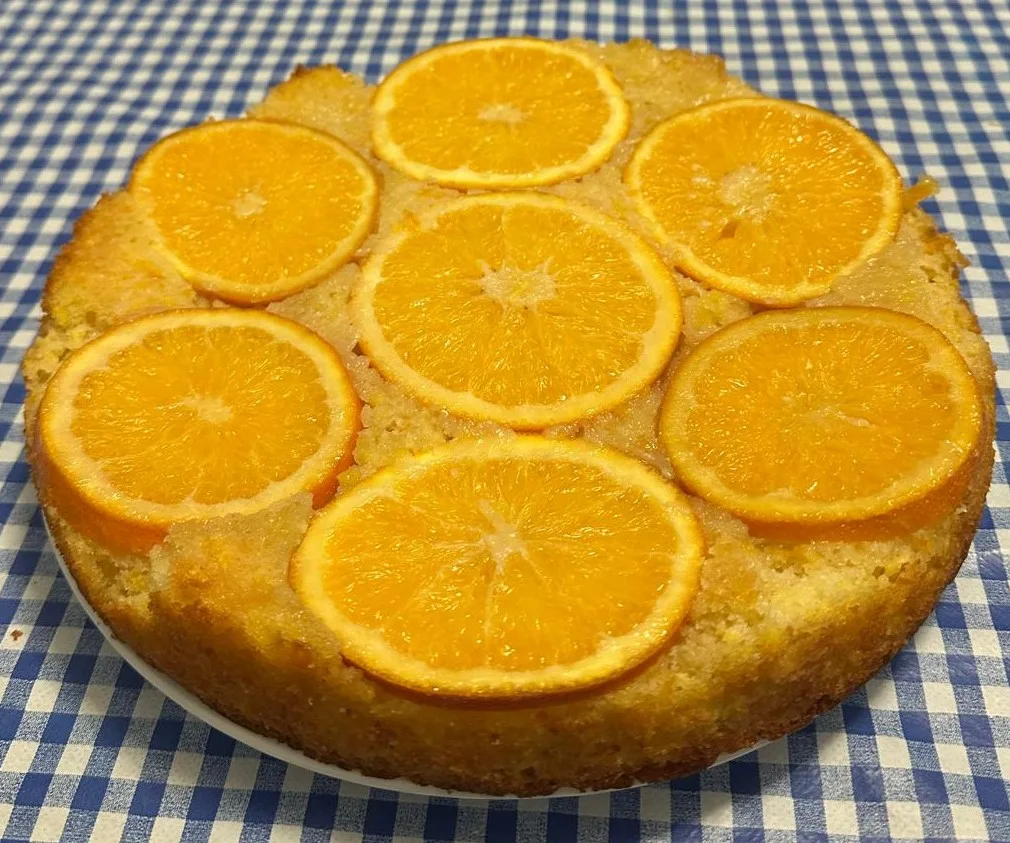להוציא, לקרר, להפוך על צלחת הגשה – עם פרוסות תפוז למעלה