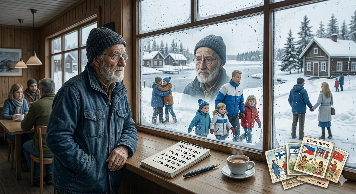 היום, בפינלנד, בעת ביקור אצל בִּתי, כשראיתי את הפינלנדים, נזכרתי בילדותי ובתמיהתי התמימה. ביקרתי מאז בארצות רבות בעולם אך זו הפעם הראשונה שאני בפינלנד, וזאת הפעם הראשונה שבה אני רואה פינלנדים, והם נראים כמו באותן גלויות שאספנו בילדותנו ושתיארו את מדינות העולם. מי שיער אז שיום יבוא ואראה פינלנדים?